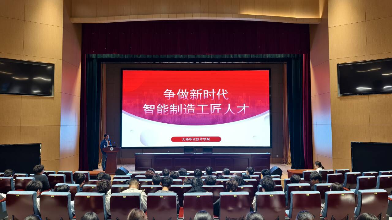 倪德学是一位既精通机械又精通电气的专家级人才,先后获得无锡市“优秀共产党员”“无锡市金牌工人”“我心目中的无锡工匠”“江苏省机冶石化系统十佳行业工匠”“无锡市劳动模范”“江苏省五一劳动奖章”等荣誉。他围绕“智能制造和工匠精神、个人成就和荣誉介绍、成长历程和心得感悟、殷切期望和未来展望”四个方面集中讲述。倪德学认为智能化时代背景下,需要未来的工匠掌握物联网、AI、数字孪生等技术实现高效、精准的制造模式,鼓励学生积极主动学习新技术、新知识,为社会创造更大的价值,体悟新时代劳动精神的深刻内涵:“劳动不仅是技能的锤炼,更是价值观的塑造。接着倪德学展示了他多年来主动学习新知识、进行技术革新获得的成就和荣誉,回忆自己从学徒到技能大师的成长历程,强调人生的成就不在于起点高低,在于你能否做到主动学习、勇于拼搏,甘于奉献。倪德学希望同学们不虚度美好的青春年华,利用国家和学校提供的专业实训、劳动实践等资源,打好坚实的基础,实现自身价值的同时,为社会创造价值。