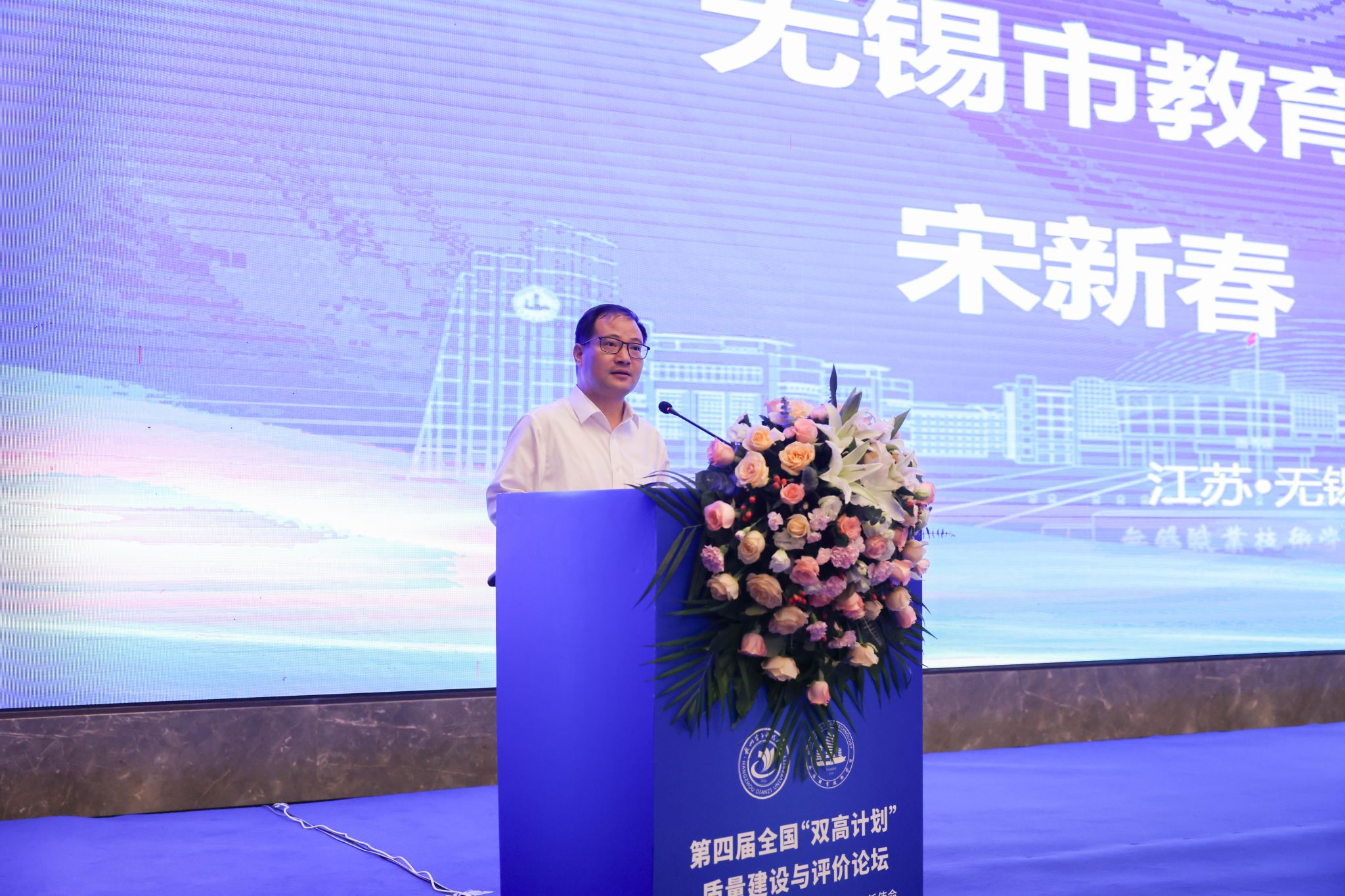 论坛由中国科教评价研究院、浙江高等教育研究院联合主办,以“新质生产力发展与职业技术教育的新使命”为主题。17日上午的会议开幕式由杭州电子科技大学资深教授、中国科教评价研究院院长邱均平主持,无锡市委教育工委副书记、无锡市教育局局长宋新春到会讲话,必赢党委书记龚方红代表学校致辞。