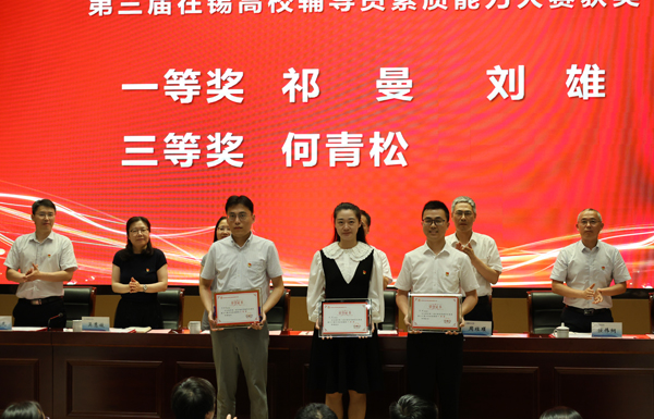 当天的大会还表彰了2022年度先进基层党组织、优秀共产党员、优秀党务工作者、第三届在锡高校辅导员素质能力大赛获奖辅导员,公布了学校首批辅导员工作室立项名单、2021-2022年度优秀辅导员和2022年度优秀班主任名单。学校党建暨思想政治研究会2023年度优秀论文评审结果和立项课题也在会上予以通报和表彰。