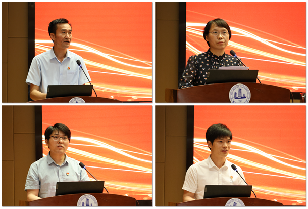 吴斌、吴华萍、陆忠华和刘世强四位同志分别代表先进基层党组织、优秀共产党员、优秀党务工作者和优秀辅导员作交流发言。
