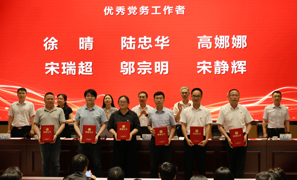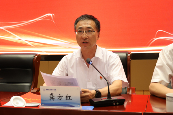 6月27日下午,学校在厚德楼一楼报告厅召开党建和思想政治工作暨庆祝中国共产党成立102周年表彰大会。校领导龚方红、周桂瑾、杨雪琴、强伟纲、吴慧媛、李衔、奚茂龙,中层干部、辅导员、二级党组织负责人和思政教师代表等150多人参加了大会。