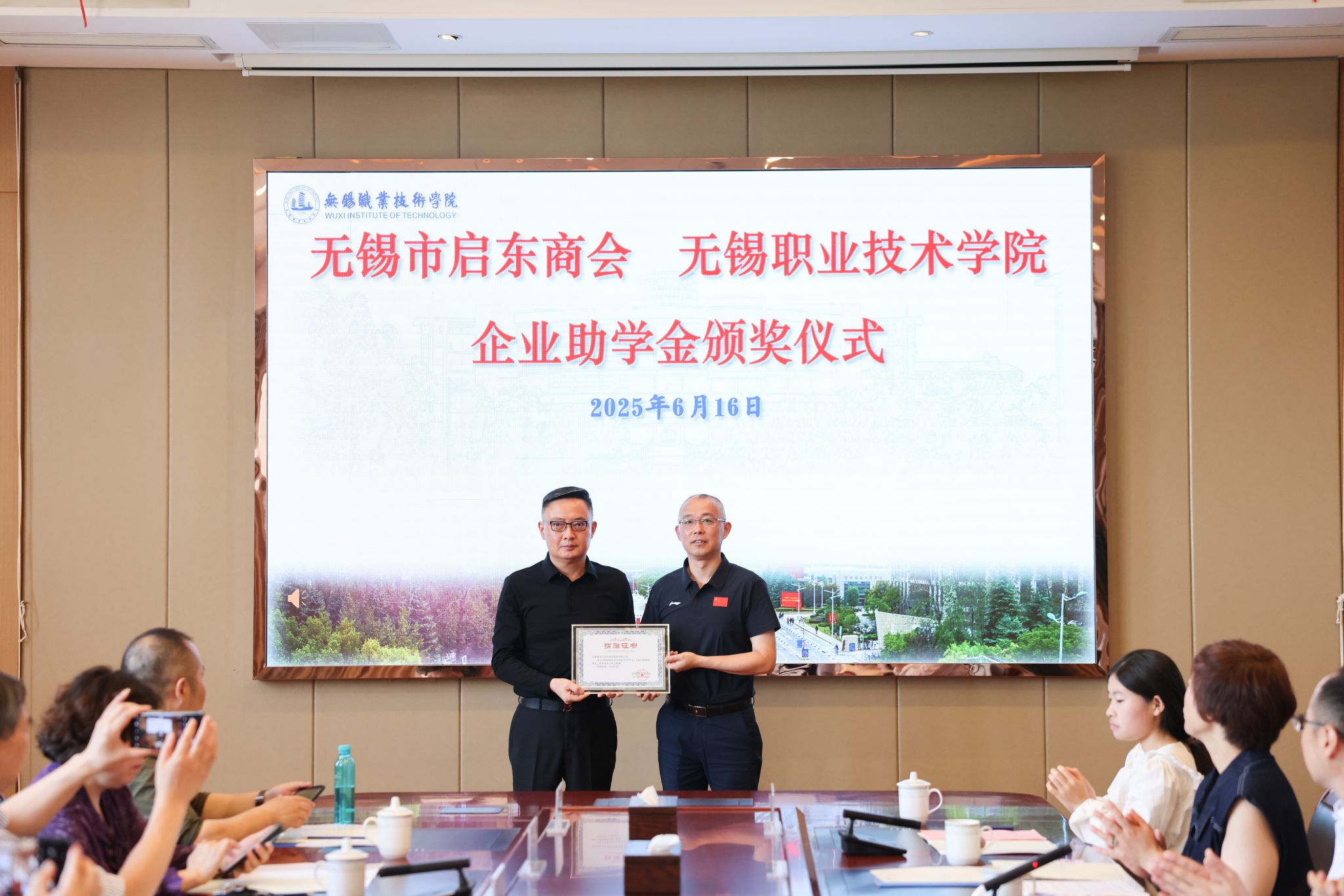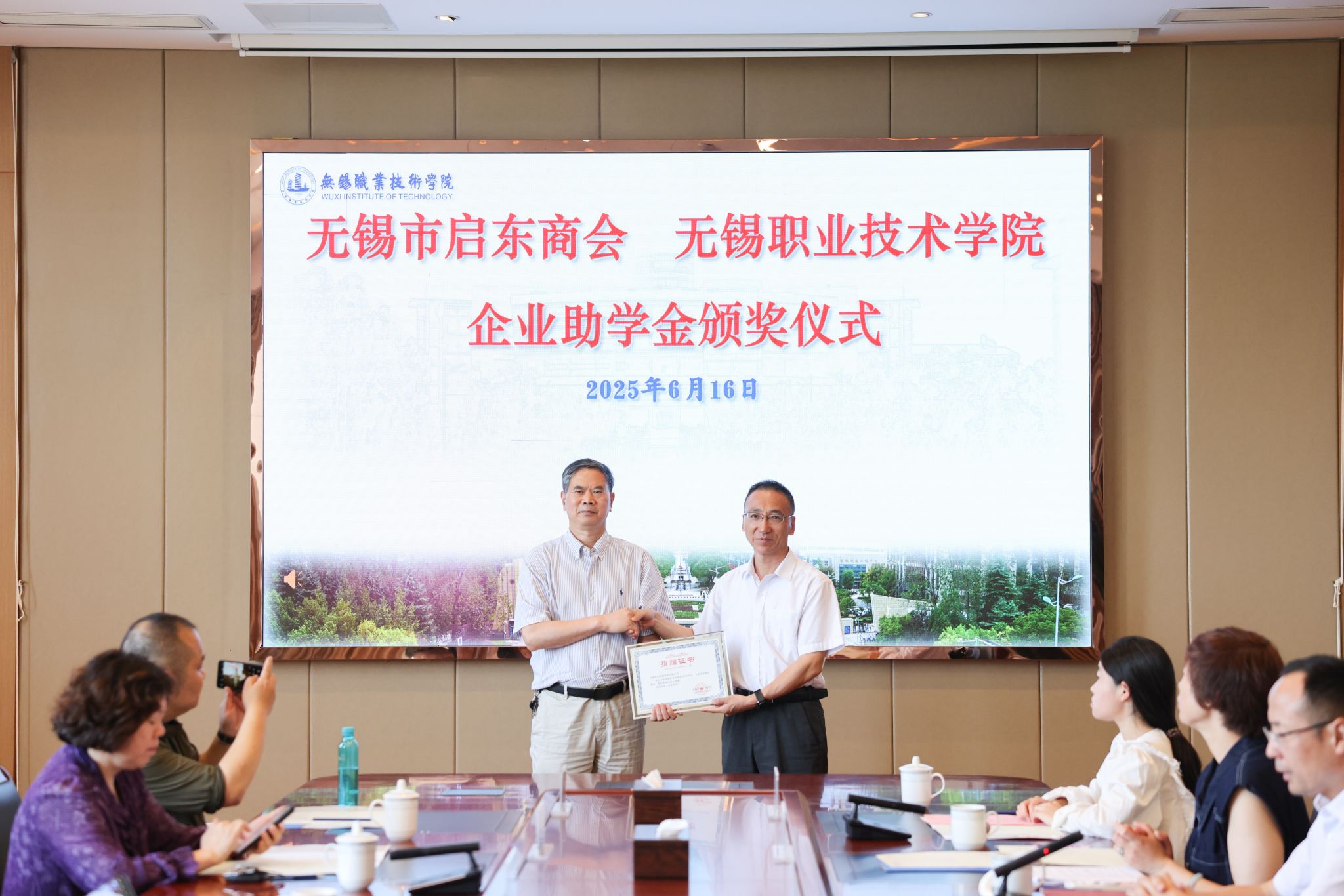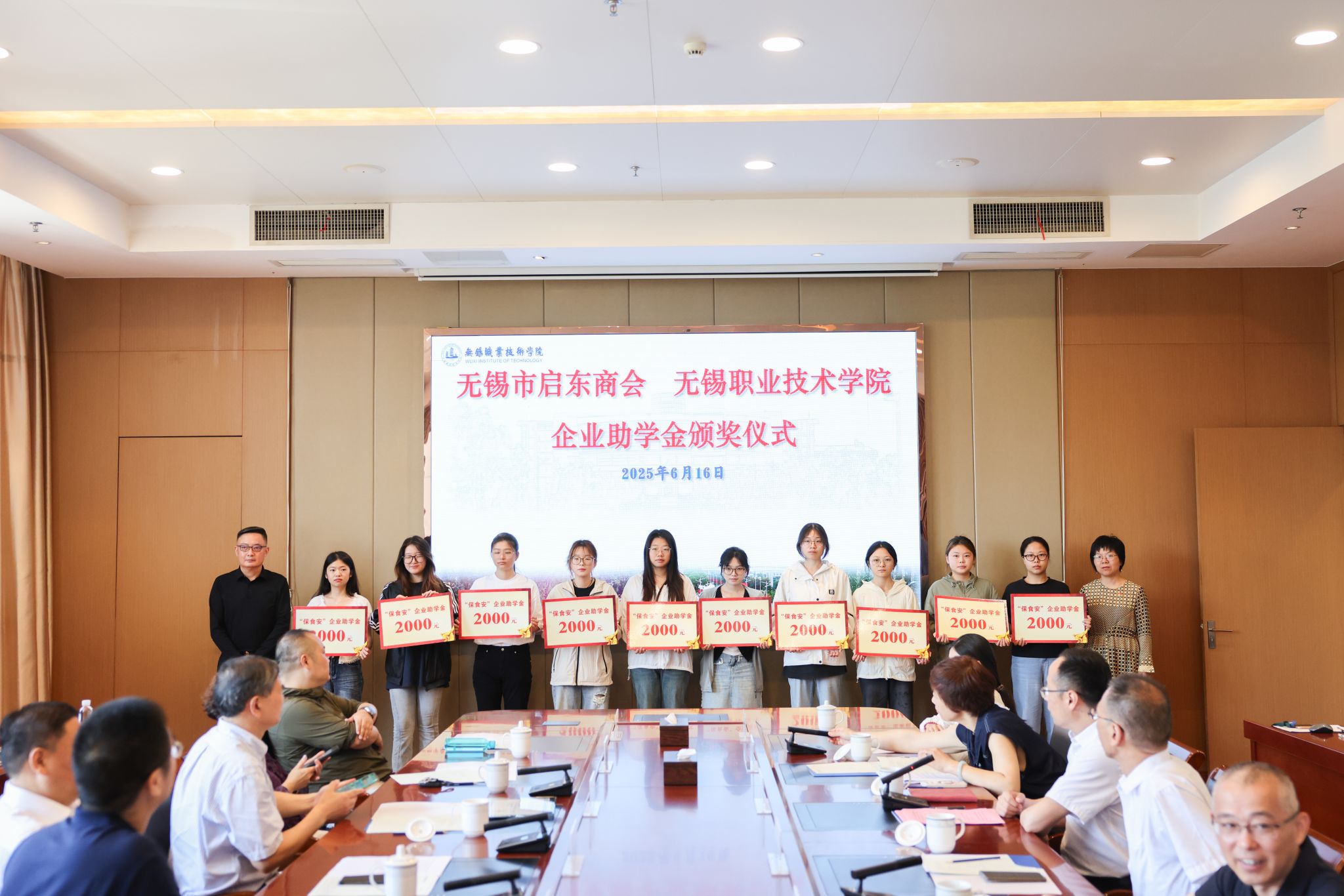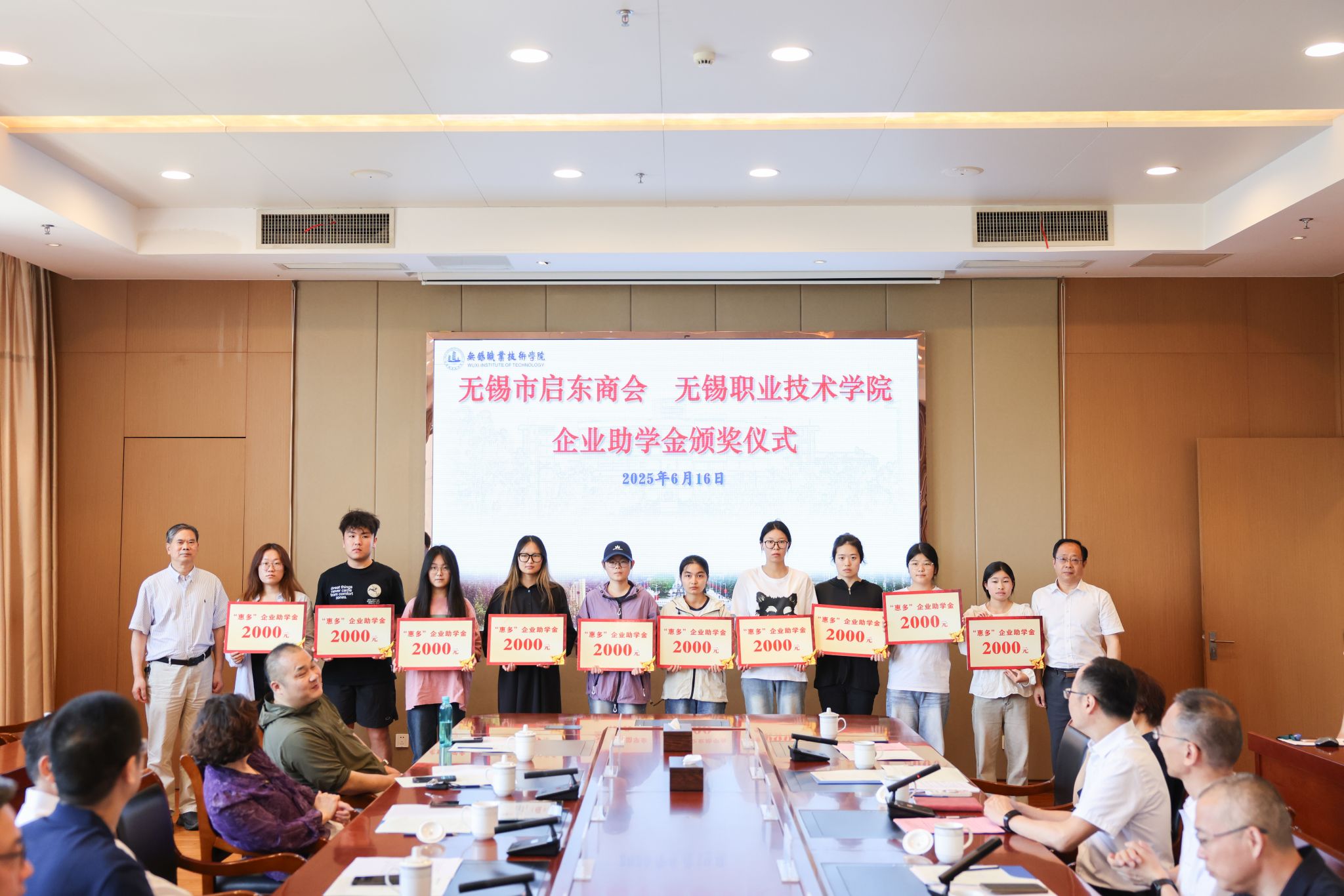 6月16日上午,无锡市启东商会企业助学金颁奖仪式在厚德楼F201会议室举行。无锡市启东商会会长陆军等一行7人,必赢党委书记龚方红、副校长强伟纲,学生处、财经学院、管理学院等有关部门领导以及受资助的20名学生参加,体育部党总支书记宋静辉主持仪式。