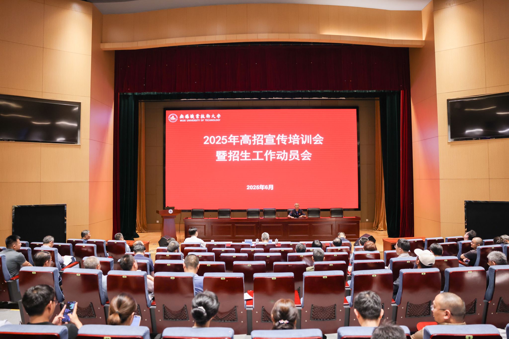 6月19日下午,学校在厚德楼召开一楼报告厅召开2025年高招工作动员会暨招生宣传培训会,校长周桂瑾出席会议并作动员讲话,各招生宣传片区组长、招生骨干、招生就业处全体成员参加会议。