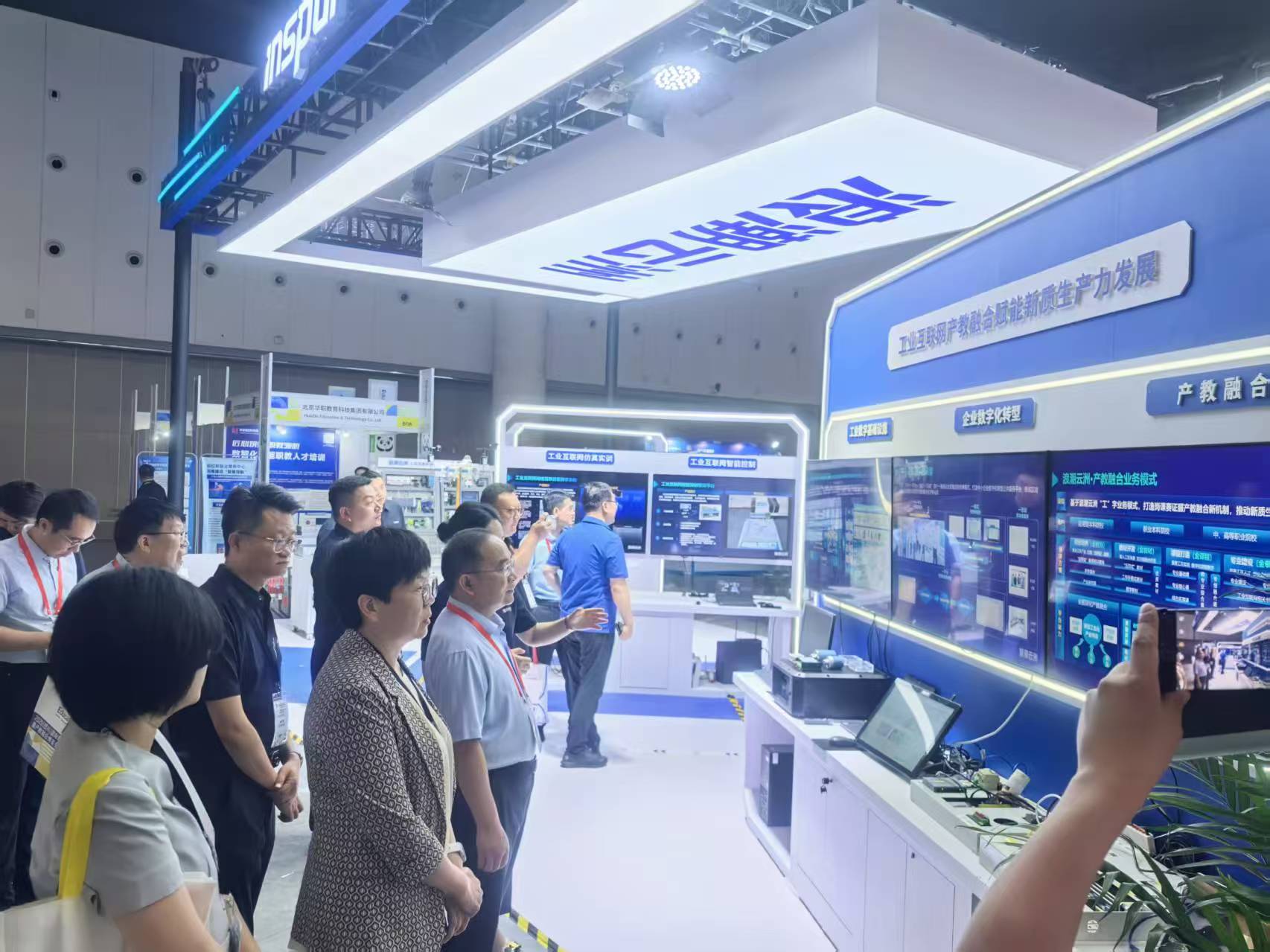 会议期间,必赢携手浪潮云洲公司共同设立展位,重点展示了双方联合开发的融合型工业互联网生产线自动监控实训设备。该设备由学校自主设计,校企深度合作打造,以服务日常教学和1+X技能证书培养为核心目标,深度融合工业数据采集、可视化看板开发、云平台部署应用等前沿技术,实现了教学内容与产业需求的无缝对接。