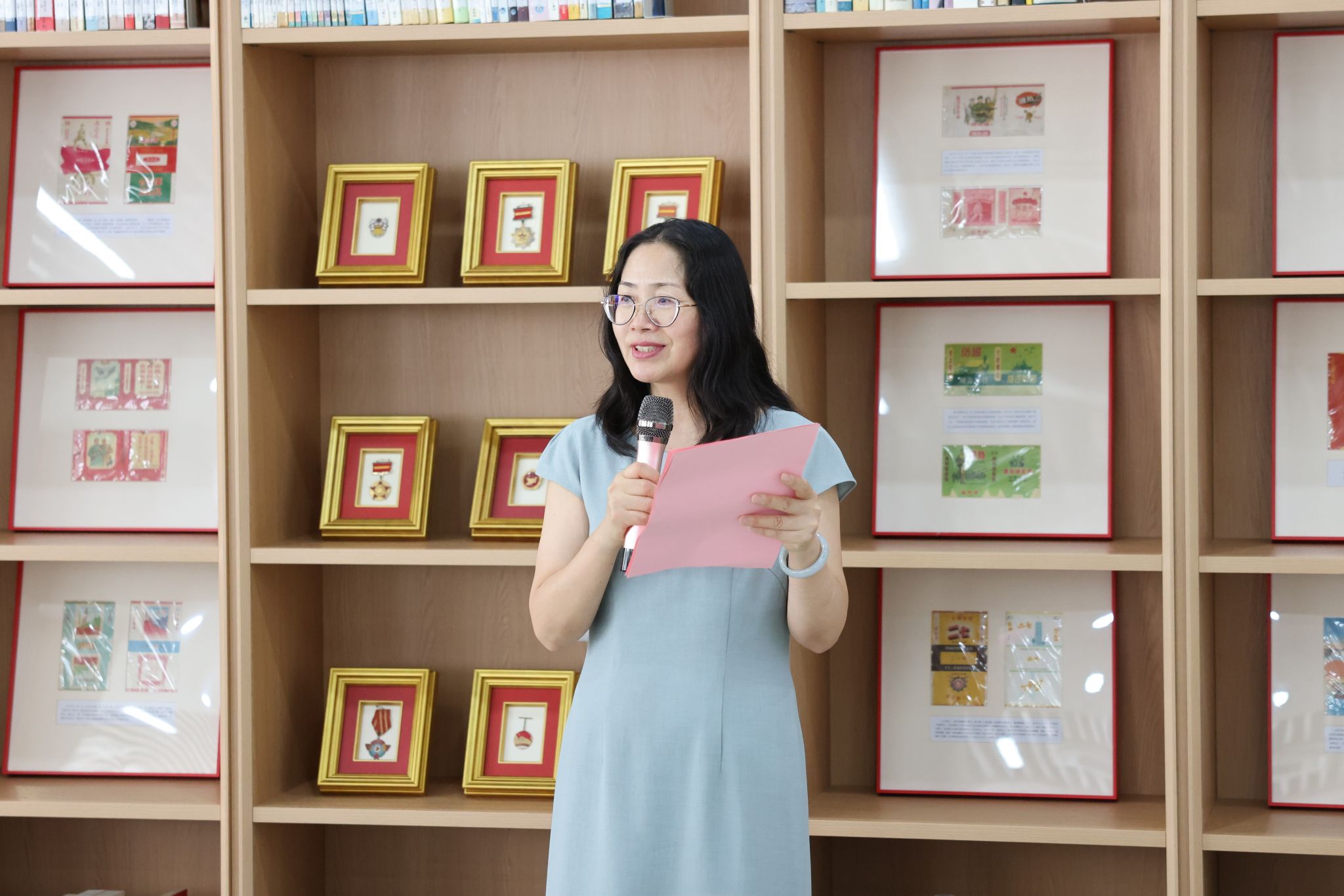 揭牌仪式由校党委副书记杨雪琴主持。杨雪琴对捐赠人代表表示热烈欢迎,他们多为老一辈革命家的后代,带着家族荣光与历史记忆参与此次活动,赋予书苑独特的红色底蕴。