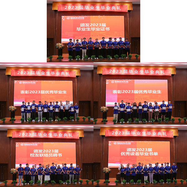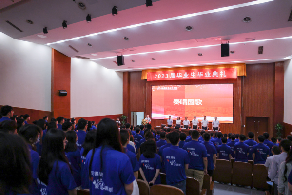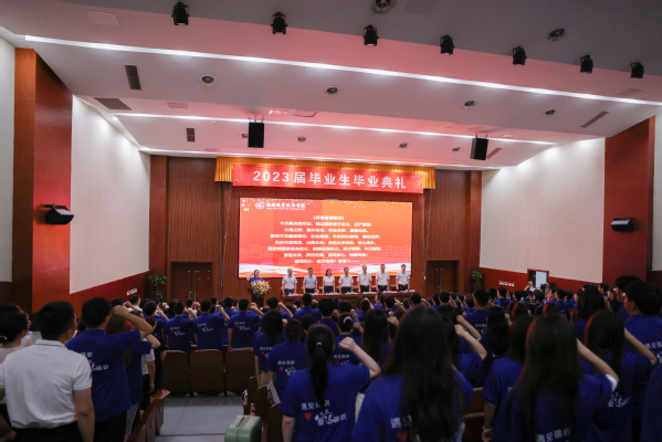 毕业典礼由副校长强伟纲主持,以师生共同奏唱雄壮的国歌拉开序幕。副校长奚茂龙宣读2023届毕业生毕业结业决定和优秀毕业生表彰决定,校党委副书记杨雪琴宣读2023届校友联络员名单。校领导向毕业生表达了热烈的祝贺,并为毕业生代表、优秀毕业生代表颁发了毕业证书、荣誉证书,以及校友联络员聘书。另外,学校图书馆根据读者近三年的图书借阅情况,对2023届毕业生借阅量排名前30名的读者进行表彰。校领导为这些热爱阅读的同学们赠送了优秀读者毕业书单。