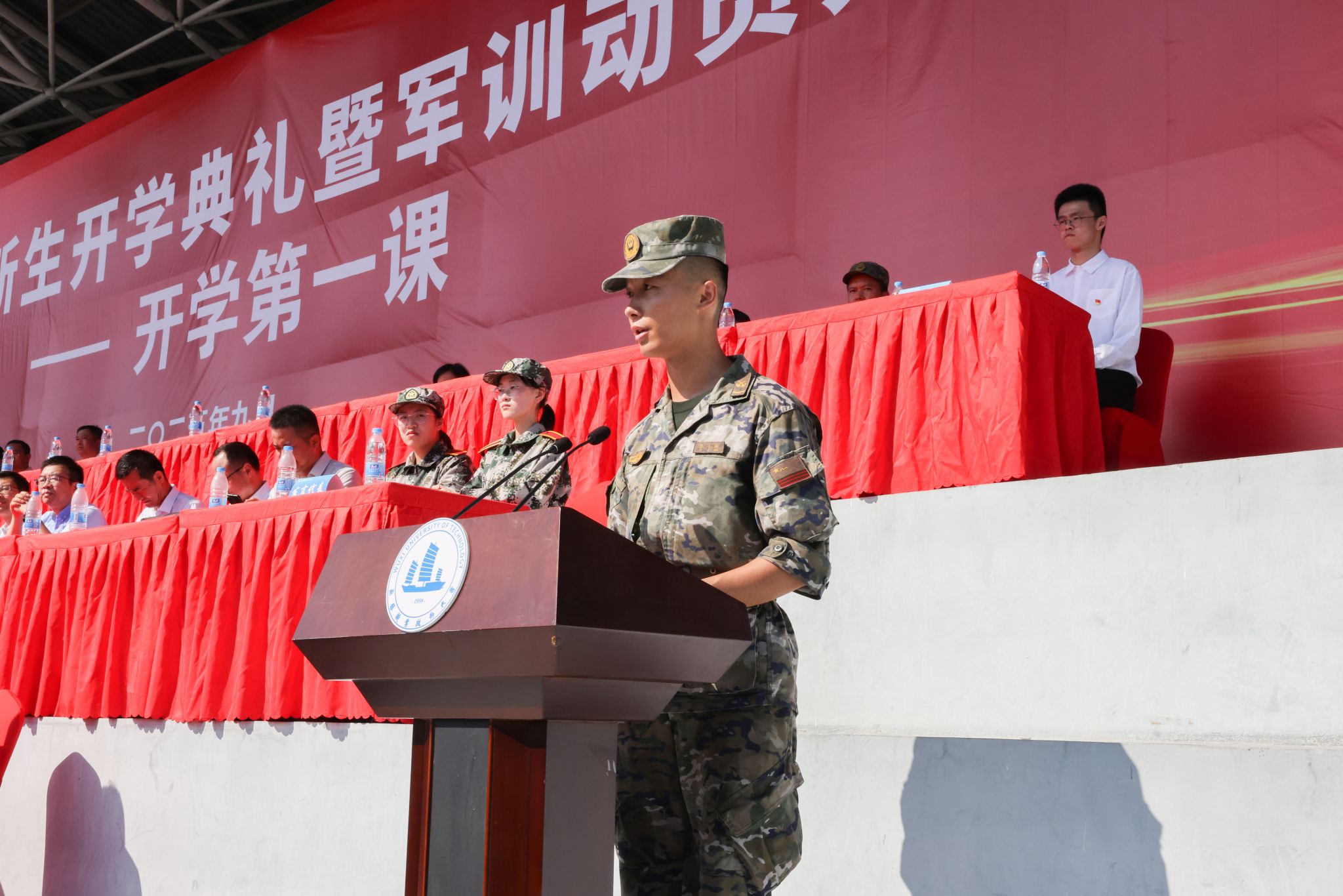 储开峰宣读了2025级学生军训的营连编成情况,并勉励全体新生以军训为契机,向教官学习,坚持勤学苦练,培养意志品质,提升技能本领,增强纪律性、战斗力,为今后的人生打牢奋进的基础。军训教官代表蔡子祥在发言中庄严承诺,将严守纪律、科学施训、严爱相济,鼓励同学们用坚韧对抗疲惫,用团结战胜困难。