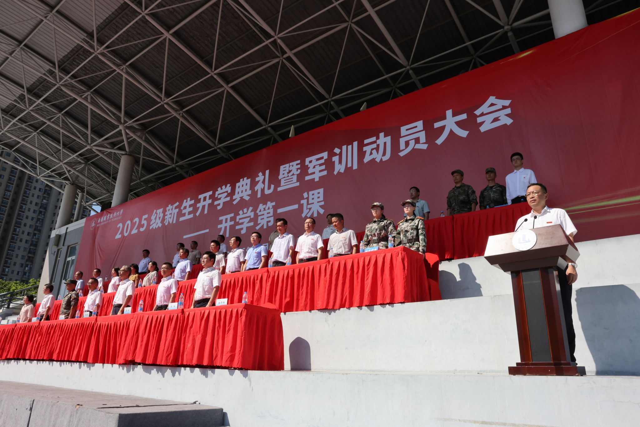 龚方红以“以青春之我,绘时代新篇”为题发表讲话,代表学校欢迎6009名新同学的到来,并从“城、校、人”三个维度详细介绍了学校的办学特色和发展前景。他对新生提出三点期望:要弘扬抗战精神,厚植家国情怀;要勤学笃行不怠,锤炼技能本领;要锤炼强健身心,开启美好人生。他勉励新生以理想为帆、以实干为桨,在课堂中求真知,在实训中练本领,在实践中长才干,不负韶华、砥砺前行。