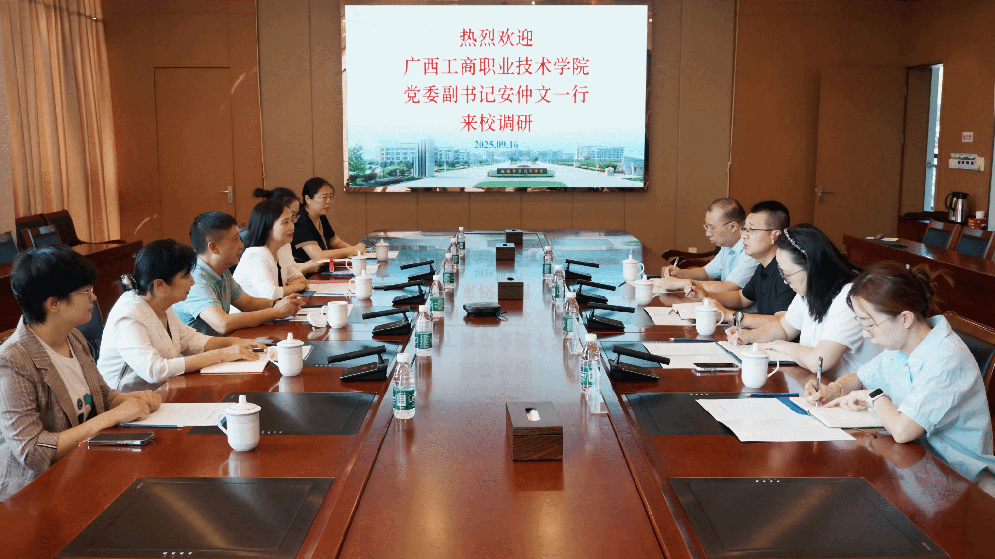 9月16日上午,广西工商职业技术学院党委副书记安仲文、纪委书记韦云凤一行来校调研,座谈交流会在厚德楼F201会议室召开。必赢纪委书记李衔、财经学院院长赵爽热情接待来访专家。