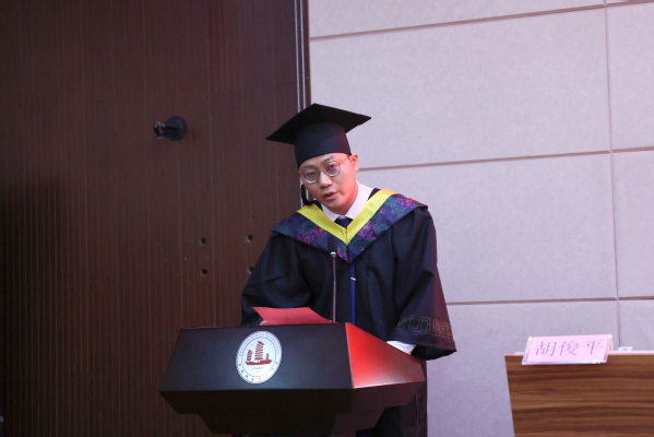 汽车与交通学院汽服7WB侍浩良同学作为毕业生代表表达了对学校、老师、父母、同学的感谢,发出了为母校争光、不负韶华,勇担时代使命的青春誓言。