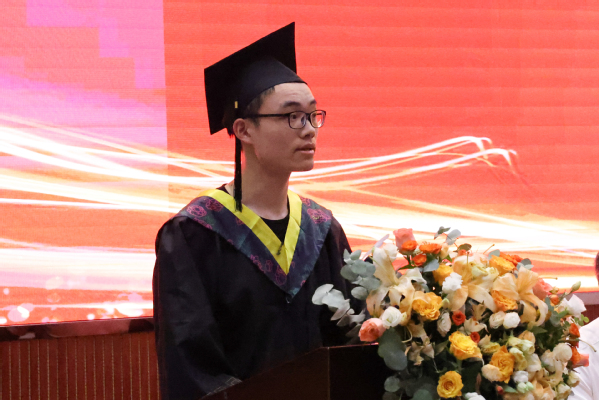 管理学院朱琳老师作为教师代表发言,向毕业生们表达了祝贺、感谢和祝愿,希望同学们做一个肩负使命、胸怀坦荡的追梦人;也要做一个踏实奋进、勇挑重担的责任人。机制11941班龙宇同学作为毕业生代表发言,回顾了四年美好大学时光所学、所感、所获,并承诺在以后的工作岗位上做一个敢挑重任的人。