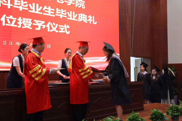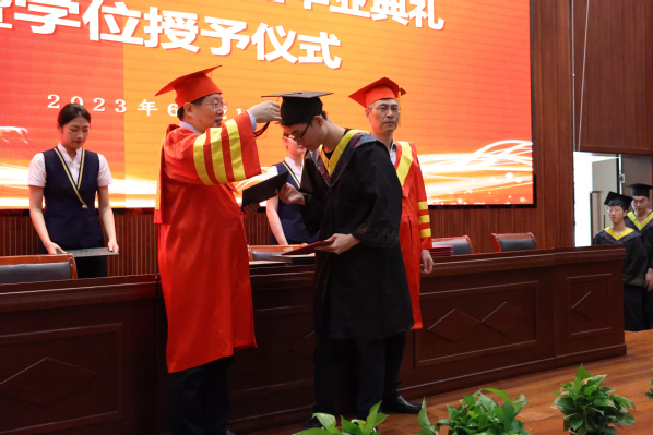 在庄严的国歌声中,2023届高职本科生毕业典礼暨学士学位授予仪式正式开始。田立新寄语学生,希望同学们在拥抱新时代,奋进新征程中要正心明道,行稳致远;要惟实尚能,锤炼本领;要乐观豁达,开放包容。