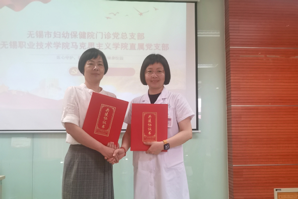 活动中,马克思主义学院直属党支部与无锡市妇幼保健院门诊党总支签订了共建协议,约定在习近平新时代中国特色社会主义思想和党的二十大精神指导下,共同探索党建工作新路径,共促组织建设,共育党员队伍,共享发展成果。双方工会协商加强联动,无锡市妇幼保健院门诊分工会将利用医疗保健相关资源,为必赢师生提供健康咨询、诊疗支持、体检服务、健康及生命教育等定制化、特色化、专业化健康服务。