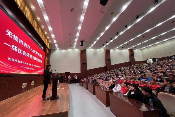 揭牌仪式后,特邀请苏州大学体育学院博士生导师、社会体育指导员讲师团专家戴俭慧教授,为到场的300余位老年人作了一场关于健康养生知识的专题讲座,并对一线社会体育指导员政策作了详尽的解读。