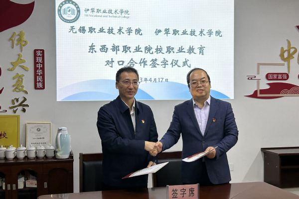 在伊犁职业技术学院,龚方红重点介绍了学校发展历程、国家“双高”计划建设情况、中国特色职业教育“无锡职院方案”推进情况以及对口支援新疆职业院校帮扶工作开展情况。伊犁职业技术学院副校长刘运涛对调研组一行来访表示热烈欢迎,并希望两校能够在党建共建、专业建设、师资培训、教科研协作等方面开展全方位的合作交流。在充分的交流座谈后,双方共同签署了校级合作共建框架协议。