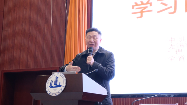 为进一步推进党史学习教育常态化长效化,不断厚植信仰力量,3月28日下午,无锡市委讲师团王铭涛团长应邀来必赢作《在毛泽东诗词中学习百年党史感悟中国精神》的专题讲座,讲座由副校长奚茂龙主持,近400名师生到场聆听。