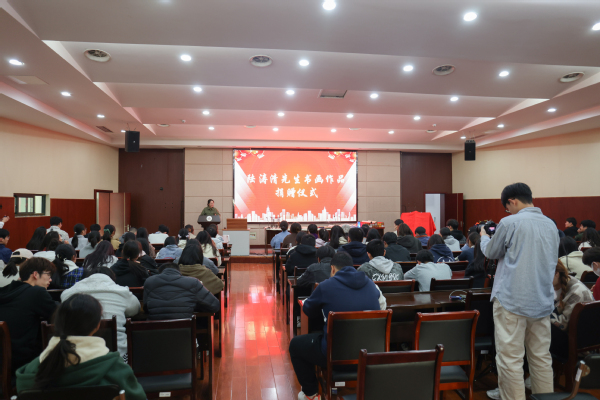 3月14日下午,校团委在国际交流中心二楼报告厅顺利举办无锡书画名家进校园暨陆涛清先生书画作品捐赠仪式,校党委副书记杨雪琴、团委副书记郑月圆,以及蠡溪书法协会、蠡溪画社的指导老师和同学们出席活动。