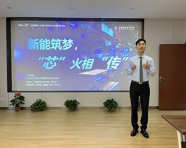 此次大赛以“生涯逐梦、职赢未来”为主题,在总决赛现场,郭祥龙同学结合提交的书面作品,通过生涯规划展示、职业体验陈述、评委选手互动问答三个环节,全方位、多角度、个性化地展示自己对于职业生涯的认知以及对大学学习、生活、实践实习的合理规划,将小我的职业规划梦想融入国家新能源汽车行业发展的大趋势中,最终获得专科生赛道一等奖。