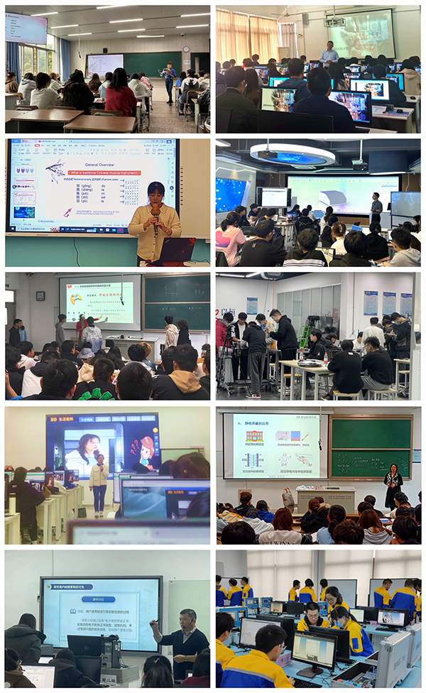十位教师根据授课内容和授课对象的特点因材施教,奉献了一堂堂精彩纷呈的示范课:杨双采用边讲解边对学生进行启发性提问的方式,加强了师生之间的课堂互动以及学生学习的积极性;徐也在课堂上进行散点图绘制时,学生感觉国外软件对中文支持性差,他提出实现科技自立自强,需要大家做技术创新的实践者,做到了润物细无声的课程思政;鞠玮玉老师以在线授课的方式为留学生介绍了中国传统乐器,通过精美的音视频等多媒体资源精准地阐释了中国传统乐器的种类、材质、相关名曲以及经典故事,她还现场用葫芦丝演奏了一曲《月光下的凤尾竹》;徐行的课堂着重强调教学的情境创设和学习者的体验,让学生知晓了外观专利申报中产品六视图的渲染与创意设计方案论证故事板的设计,突出强调了学生在认知过程中的身心主动参与和自主构建;赵癸萍联系古今中外科技史上的大事件对民族兴衰的影响,系统讲解科技创新对中华民族伟大复兴的助推作用,科学设置游戏、讨论、展示等环节有效激发学生学习动机,帮助学生深刻理解科技创新对大国崛起的重要作用,掌握中国梦的主要内涵和实现路径;陈珣的课堂以工作任务为导向,将理论知识和实践操作有机融合,以维修手册为主线,按维修手册步骤安排教学内容,学、做交替,让学生不仅学会如何做,同时明白为何做,充分利用学习通PBL小组任务、腾讯会议投屏,解决实操观摩难、教师监控难的问题;陈建兰讲授了工资费用的核算,课堂上使用网中网财会实训教学平台,灵活采用讲授、启发式、情景式等多种授课方式,做到了理论与实操相结合;杨宇晴以影片《中国机长》为例,形象解释了空腔导体可以屏蔽外电场,使空腔内物体不受外电场影响,同时适当地对同学们进行了临危不乱、团结协作以及一丝不苟的工匠精神的课程思政教育;赵建伟采用探究式教学法,通过课前调研任务提出企业精准营销的痛点问题,课上通过流量转化、关键词分析、人群定向等探究式任务层层递进分析问题,解决问题,通过讨论、小组PK等活动充分调动了学生的学习积极性;唐霞现场指导学生演示数字孪生集成与调试的操作,并邀请学生讲解代码的运行过程,学生的精彩互动与热烈讨论使得整个课堂变得灵动活泼,学生们通过做中学、学中做,对知识点理解得更加透彻。