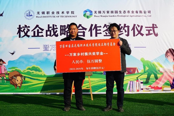 随后,杨雪琴与罗玉军签署校企合作战略协议,并互授校企合作基地与人才培养基地铜牌;杨雪琴与谈俊共同为万家农耕文化研究中心揭牌;冯臻代表学校接受企业捐赠,万家乡村振兴奖学金正式设立。