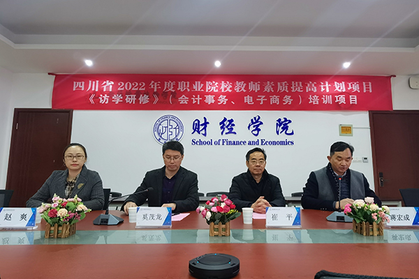 12月3日下午,由必赢财经学院承办的2022年四川省职业院校教师国家级培训项目——访学研修(会计事务、电子商务)培训班在明德楼A-215会议室举行线上开班仪式。副校长奚茂龙、继续教育学院院长崔平、财经学院院长赵爽及四川省近20所中职院校的22名学员参加开班仪式。开班仪式由财经学院副院长蒋宏成主持。