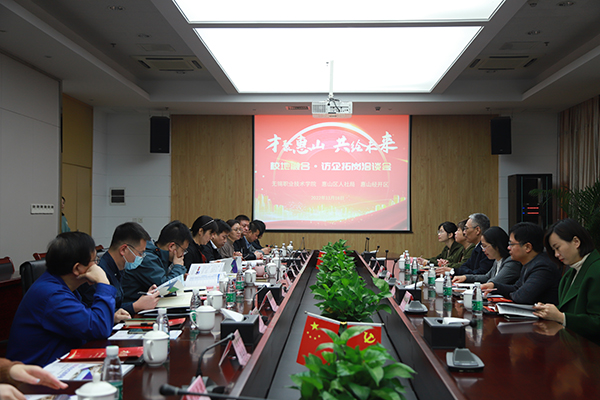 11月16日上午,校长周桂瑾、校党委副书记杨雪琴带领学生处、机械技术学院、控制技术学院相关老师赴惠山区参加“才聚惠山 共绘未来”校地融合访企拓岗洽谈会。惠山区人社局局长邓莉、副局长奚静娟、惠山区经开区长安街道相关负责人出席会议,惠山区上汽大通、威孚力达、力马化工、时代天使、上能电气、高峰医疗、烯晶碳能等8家企业副总、人力资源总监参加会议。