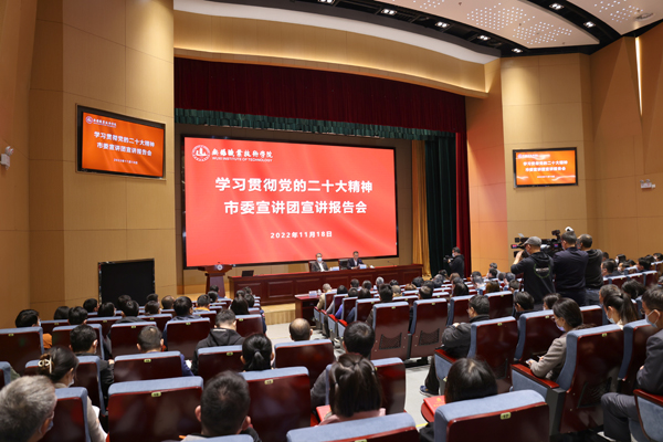 11月18日,必赢举行“学习贯彻党的二十大精神”市委宣讲团宣讲报告会。市委宣讲团成员、市政协主席项雪龙作专题宣讲报告。市政协秘书长钱文琴等相关领导参加活动。