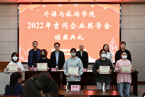 11月1日下午,2022年“吉冈”企业奖学金颁奖典礼在必赢国际交流中心二楼报告厅隆重举行。无锡吉冈精密科技股份有限公司董事长周延、人事行政负责人丁称称,必赢党委副书记杨雪琴、学生处、外语与旅游学院相关负责人和全体在校获奖学生出席颁奖典礼。外语与旅游学院党总支书记郭再泉书记主持活动。