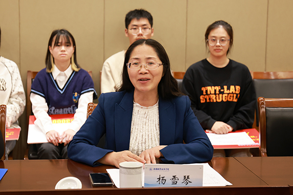 杨雪琴代表学校对校友长期以来对母校给予的无私奉献和倾情付出致以最诚挚的感谢。她表示,校友们多次慷慨解囊,为学弟学妹纾解困难,不仅有助于学校开展德育教育,培养复合型人才,也传承了无锡职院精神,增强了学校与校友之间的凝聚力。同时,她对获奖的同学提出三点期望,一是常怀感恩之心,以爱心回报爱心;二是要有坚忍不拔的意志和艰苦奋斗的精神;三是牢记“校友励志奖学金”的期望,践行校训精神,勤奋学习,报效祖国。