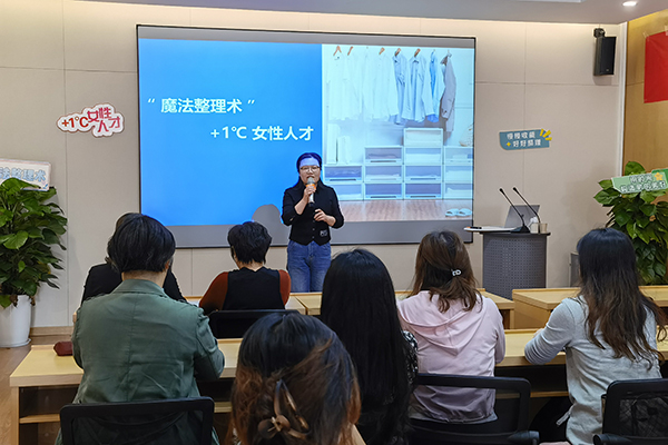 10月12日下午,校女职工委邀请在家整理事务所主理人胡童老师,为学校女教职工带来了两场魔法整理术精彩讲座。此次活动是市区两级妇联联动开展+1℃女性人才服务计划系列活动之一,全校近50位女教职工报名参加了活动。