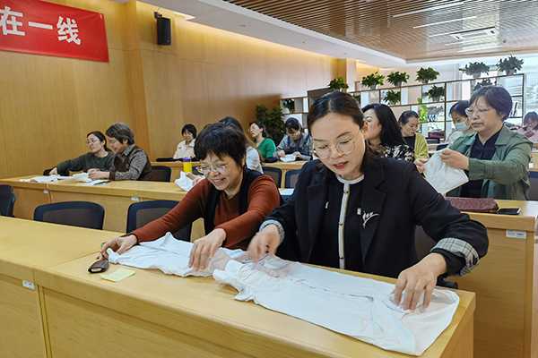 老师,请问被子如何整理收纳呢?长裤如何折叠摆放呢?女教职工们跟着老师一边进行操作,一边提出各种问题。一个半小时的课程让女教职工们学习了许多整理收纳小技巧,大家纷纷表示这样的课程非常实用。
