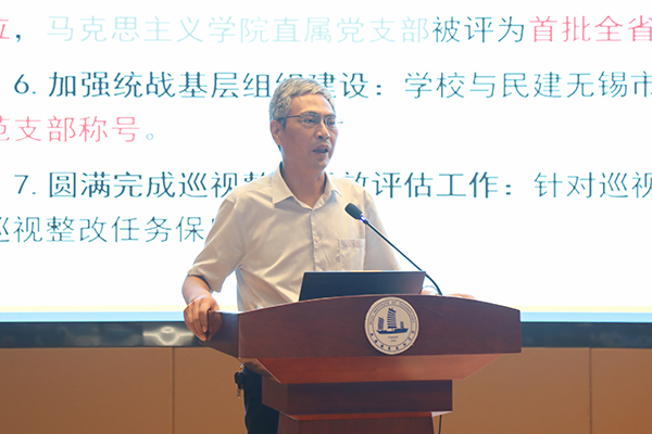 会议由副校长强伟纲主持。全体参会人员学习了习近平总书记在省部级主要领导干部专题研讨班上发表的重要讲话精神。校长周桂瑾作“聚焦提质升级 推进高质量发展”主题工作报告,对学校上半年工作进行了梳理和回顾,分析了学校当前发展中面临的难点和痛点问题,指出今年是党和国家事业发展进程中十分重要的一年,也是学校各项事业加快发展的关键期、深化综合改革的攻坚期,下半年将围绕确保学校和谐稳定安全、塑造新形势下的教育教学秩序和质量、高标准完成“提质升级年”目标等重点工作,进一步做好意识形态工作、全面从严治党、探索职业教育学科建设、持续加强人才队伍建设等专项工作,补短板、拉长板,推进学校高质量发展。