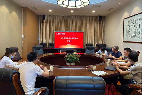 为进一步将数字技术与教学深度融合,提升学校“三教”改革中“教法”水平。8月15日上午,学校在综合楼F202会议室组织召开“金课堂智慧教室建设项目”启动会,副校长强伟纲、教务处、基础部、后勤管理处、信息化中心、中标单位相关负责人参加启动会,会议由信息化中心主任吴乃鑫主持。
