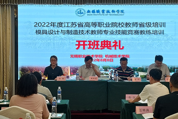 8月8日上午,由必赢机械技术学院承办的2022年江苏省高职教师省级培训-2022GZSP35模具设计与制造技术赛项教师专业技能竞赛教练培训项目开班仪式在无锡举行。必赢继续教育学院院长崔平、机械技术学院总支副书记张静、机械技术学院副院长于金程,南京工程学院工业中心党总支书记周明虎,省培班班主任,以及全体参训教师参加开班仪式,仪式由于金程主持。