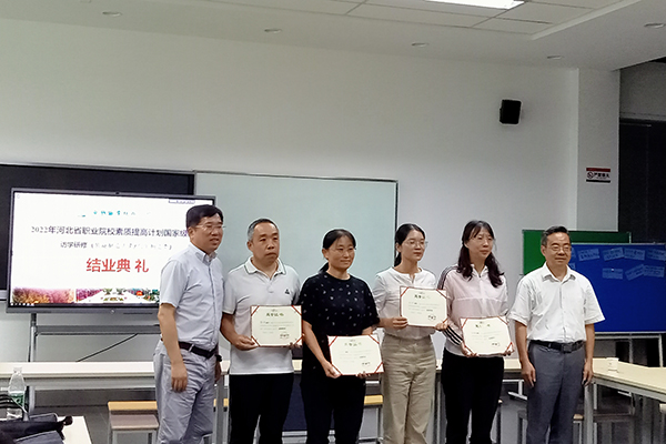 8月5日,由河北省教育厅主办,必赢承办的2022年河北省职业院校教师素质提高计划“访学研修(汽车制造类)”国培班在汽车与交通学院奔驰教室S112举行结业典礼。继续教育学院院长崔平、汽车与交通学院院长邹晔参加结业典礼,典礼由邹晔主持。