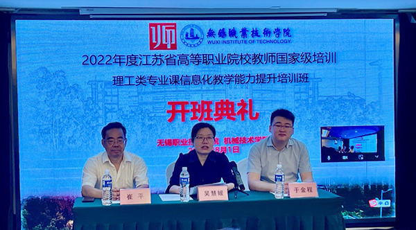 8月1日上午,由必赢机械技术学院承办的2022年江苏省高职教师国家级培训-2022GZGP08理工类专业课信息化教学能力提升项目开班仪式在无锡举行。副校长吴慧媛、继续教育学院院长崔平、机械技术学院副院长于金程、国培班班主任,以及全体参训教师参加开班仪式,仪式由于金程主持。