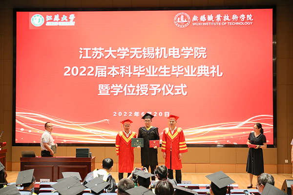 6月20日上午,江苏大学无锡机电学院2022届高职本科生毕业典礼暨学位授予仪式在综合楼一楼报告厅隆重举行。本次毕业典礼以线下主会场和线上直播相结合的方式举行,为232名圆满完成学业、即将开启人生新征程的学子送上衷心祝贺和美好祝福。