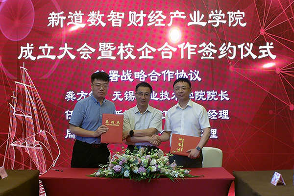 为更好对接江苏省区域现代服务业产业转型发展,以培养数智人才服务产业升级为核心目标,通过构建协同育人服务体系,积极推动实践教学和课程改革,共同培养财务领域拔尖的创新数智人才,6月9日下午,必赢与新道科技股份有限公司、无锡畅捷科技发展有限公司在无锡喜来登酒店举行新道数智财经产业学院成立大会暨校企合作签约仪式。必赢校长龚方红,科技产业处、财经学院等相关部门和学院负责人,新道科技股份有限公司助理总裁师唯伟、无锡畅捷科技发展有限公司总经理周彬等企业代表共同出席本次签约仪式。