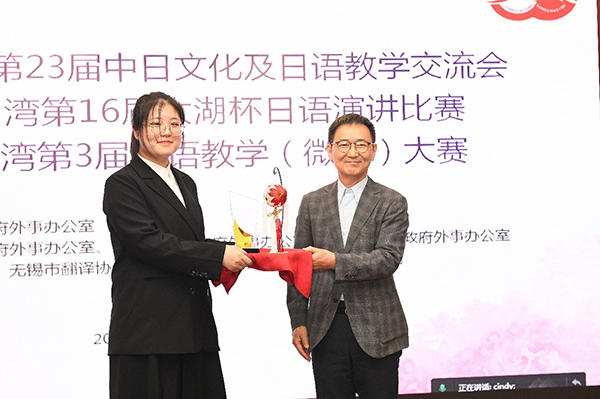系列赛重头戏太湖杯日语演讲大赛,受疫情影响采用线上+线下的方式进行,7位评委全部为日籍,本科组和专科组共40余名选手参赛。在指导老师和外教老师的悉心指导下,必赢商务日语专业三位学子表现出色取得佳绩,金纯真、戴瑞瑞同学获得特等奖,韩福家同学获得一等奖,金纯真同学还获得了友城(日本由利本庄市)特别奖。同时,必赢获承办单位特别贡献奖、才艺表演一等奖及先进集体奖。值得一提的是,本次大赛由必赢商务日语专业李耀扬、王蕊同学担任主持,圆满完成了本次大赛的主持工作。此外,日语教学微课大赛中必赢日语专业刘金凤、沈倩昉、单天洪老师获得“江苏省太湖湾第3届日语教学(微课)大赛”一等奖。