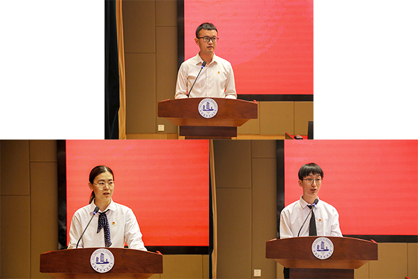 大会对荣获2021年度校级“两红”“两优”的组织和个人进行了表彰。杨雪琴宣读了《关于无锡职业技术学院2021年度团内表彰的决定》,校领导为获奖个人和集体颁发荣誉证书。随后,“中国大学生自强之星”获得者徐燕、“无锡市优秀共青团员”崔嘉龙和“无锡市优秀共青团干部”庞军作为师生代表就学习贯彻习近平总书记重要讲话结合自身成长实践作交流发言。