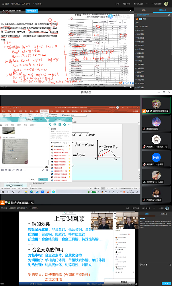 线上教学期间老师们也是各显神通,既有漂亮的板书和生动的讲解推导过程,也有视频直播,还利用多个平台配合使用等。