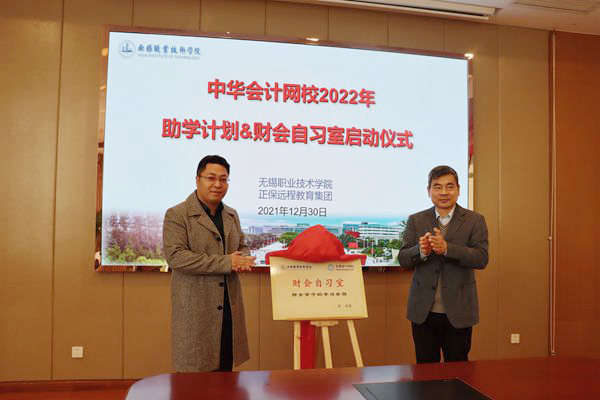 教学资源捐赠仪式上,正保远程教育集团向必赢捐赠了价值28万余元的学习资源与图书,将为参与财会自习室项目的510余名学生提供帮助,双方还共同为财会自习室揭牌。