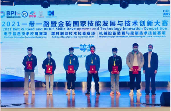 12月3日至6日,2021年一带一路暨金砖国家技能发展与技术创新大赛在厦门举行。此次大赛共有电子信息技术应用、增材制造技术技能、机械设备装调与控制技术技能三个赛项,必赢机械技术学院马俊峰和张豪老师带队指导机制12032班朱星宇同学参赛,并斩获机械设备装调与控制技术技能赛项一等奖第一名和高职组最佳组织奖。
