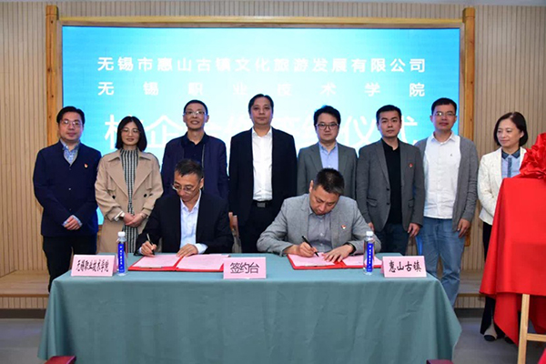 校企双方在实习实训、人才培养、教师实践、文旅项目合作等方面达成了合作签约意向,与会领导还为“无锡职业技术学院校企合作基地”和“惠山古镇人才培养基地”揭牌。随后,一行人参观了惠山古镇服务中心等场所,实地考察景区工作岗位环境。