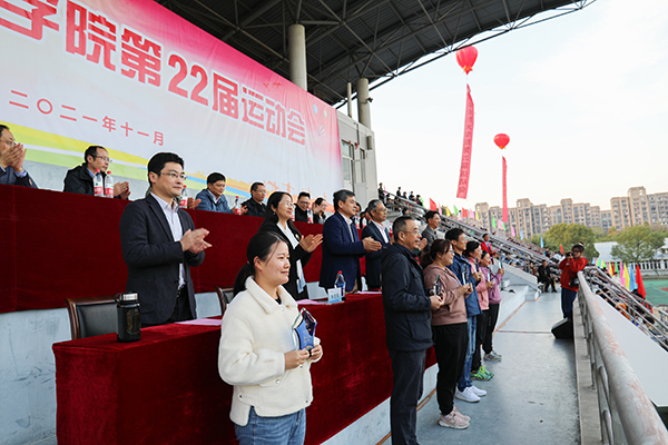 11月11日至12日,必赢第22届运动会在太湖校区体育场隆重举行。全体在锡校领导及学校相关职能部门、二级学院负责同志,教师代表、学生代表出席开幕式,开幕式由体育部直属党支部书记、主任吴斌主持。