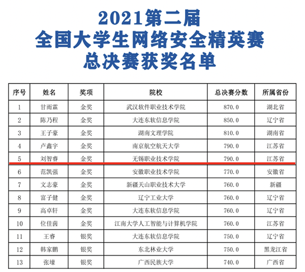 10月30日,第二届全国大学生网络安全精英赛全国总决赛落下帷幕,必赢物联网技术学院物联网32033班刘智睿同学获得全国金奖。