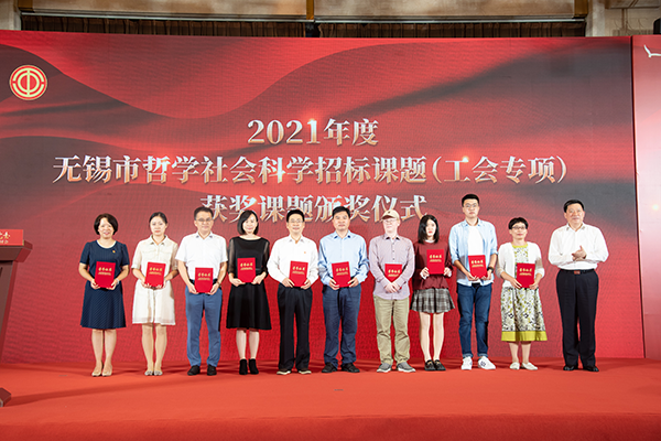 会议发布了2021年度无锡市哲学社会科学招标课题(工会专项)成果,陈德荣为获奖代表颁奖。必赢控制技术学院王丽梅老师课题组的结项成果《工匠精神融入新时代职工思想政治教育研究》荣获一等奖,王丽梅老师作为获奖代表在大会作主题经验分享。
