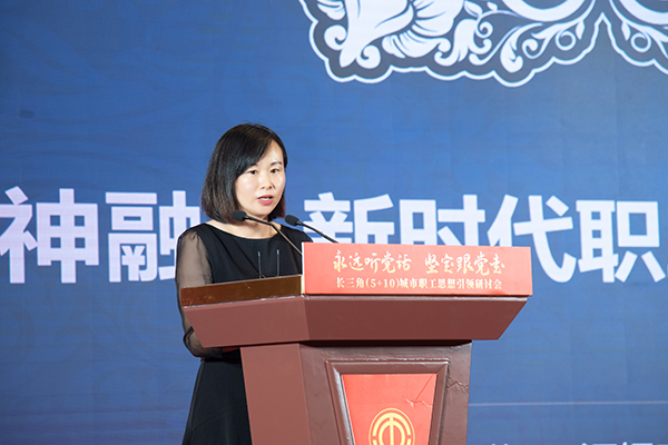 10月14日,由无锡市总工会主办的“永远听党话 坚定跟党走”长三角(5+10)城市职工思想引领研讨会在无锡隆重召开,中国工人出版社社长、党委书记王娇萍,江苏省总工会一级巡视员、直属机关党委书记马永青,无锡市委副书记、政法委书记朱爱勋,无锡市人大常委会副主任、党组副书记,市总工会主席陈德荣等领导出席会议。
