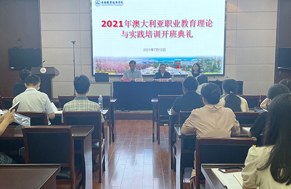 7月12日上午,由必赢财经学院承办的2021年江苏省高职院校教师国家级培训项目“澳大利亚职业教育理论与实践”培训班顺利开班。澳大利亚IVET集团执行总裁Matthew Trounce先生、必赢副校长吴慧媛教授及财经学院相关负责人、培训班40名学员参加了开班仪式。