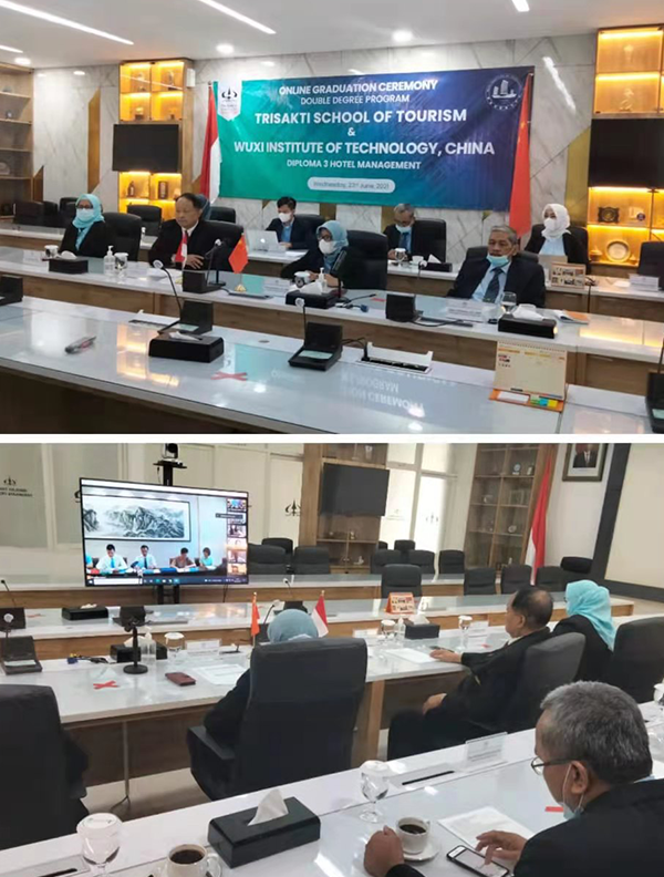 毕业时节,相逢又告别,归帆又离岸。6月23日下午,无锡职业技术学院2021届外国留学生毕业典礼在线上顺利举行。来自印尼、蒙古、孟加拉、柬埔寨等15个国家的三年制学历生与印尼特里萨克迪物流交通大学、印尼特里萨克迪旅游学院的跨国分段联合培养项目本科生毕业生,通过网络的云端互联,在海外院校领导、必赢龚方红校长、国际教育学院熊英教授、师生代表、家长的见证下,翻开人生新的篇章。毕业典礼由国际教育学院副院长平毅主持。